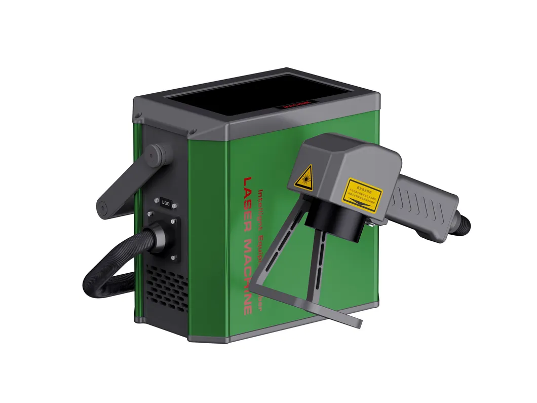 Handheld Fiber Laser Marking Machine designed for printing Date Numbers, Logos, Characters, and QR Codes. This portable solution offers high precision for metal, ceramics, plastics, and various other materials.